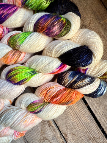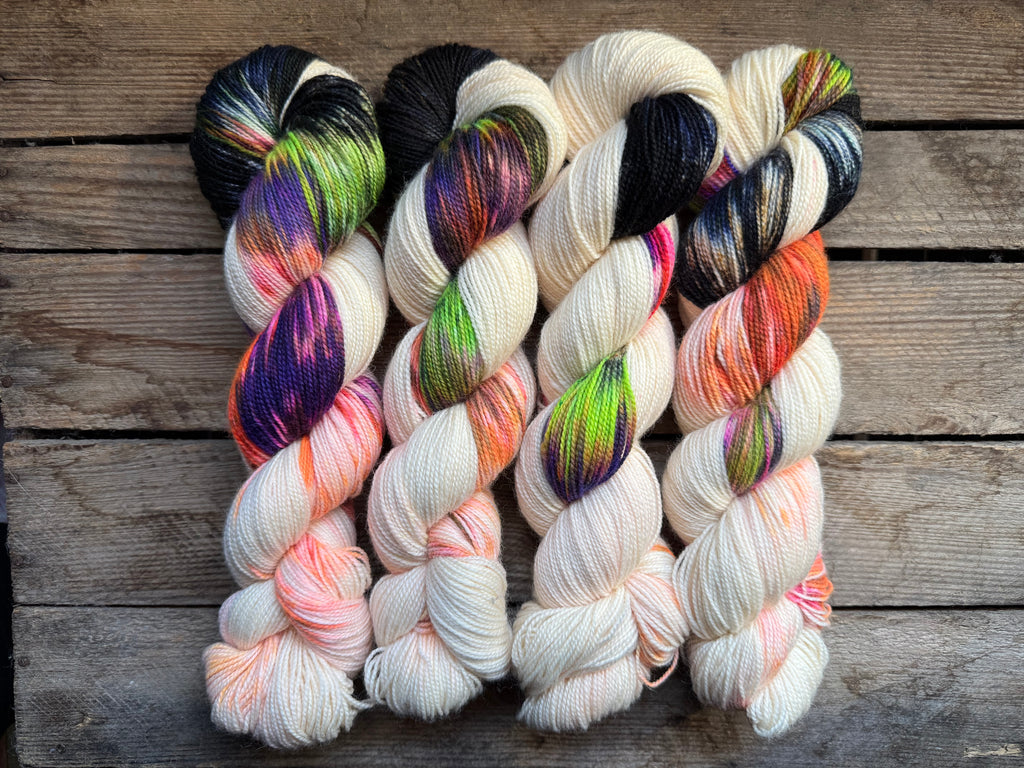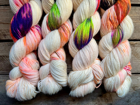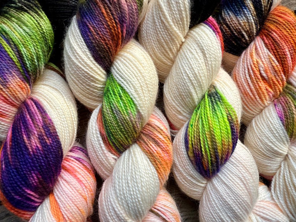 This 100 gram skein is made out of 80% Superwash BFL and 20% Nylon and this base is spun with a high twist.