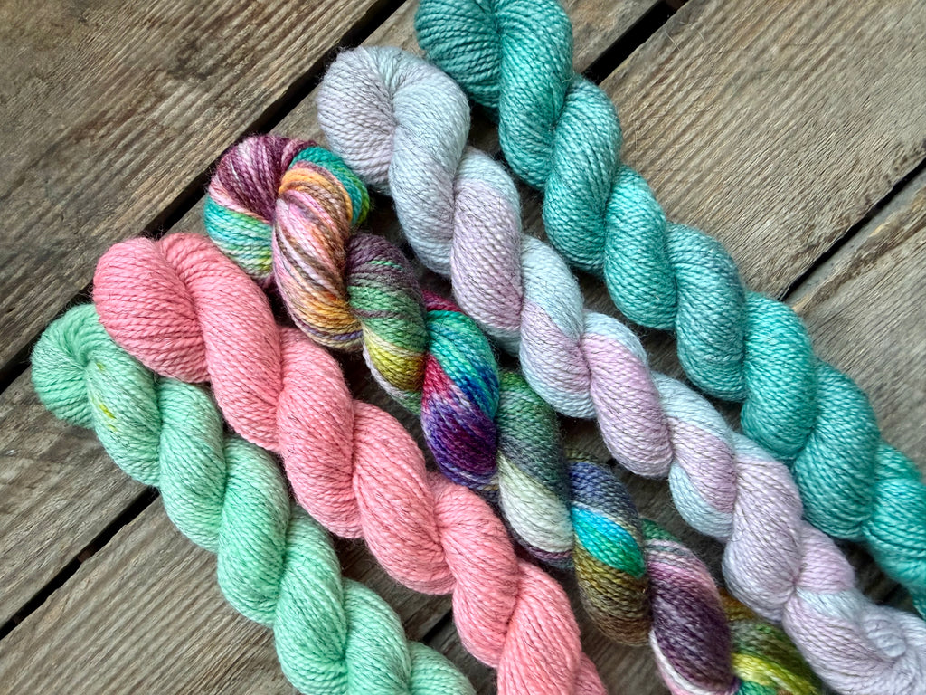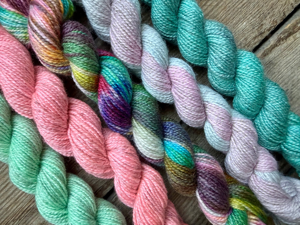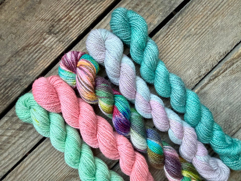 This listing is for a handdyed "Lucky Snow Sheep 2026-04” Mini Skein Set.